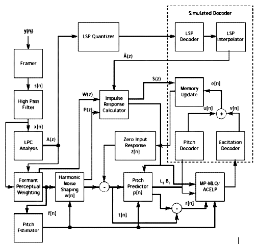 Linear-Prediction (ACELP) is used for 5.3 kHz bit rate[24].