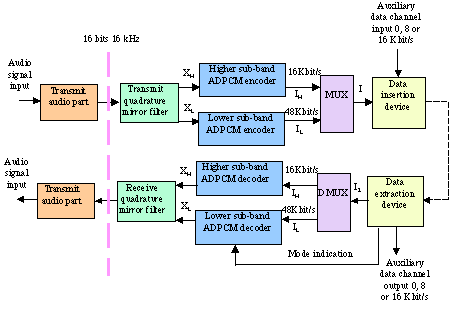 at 64 Kbps. The coding system is SB-ADPCM (sub-band adaptive differential