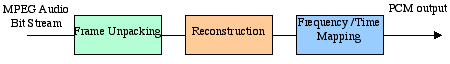 frames are unpacked and subband samples are decoded. Then, a frequency-time